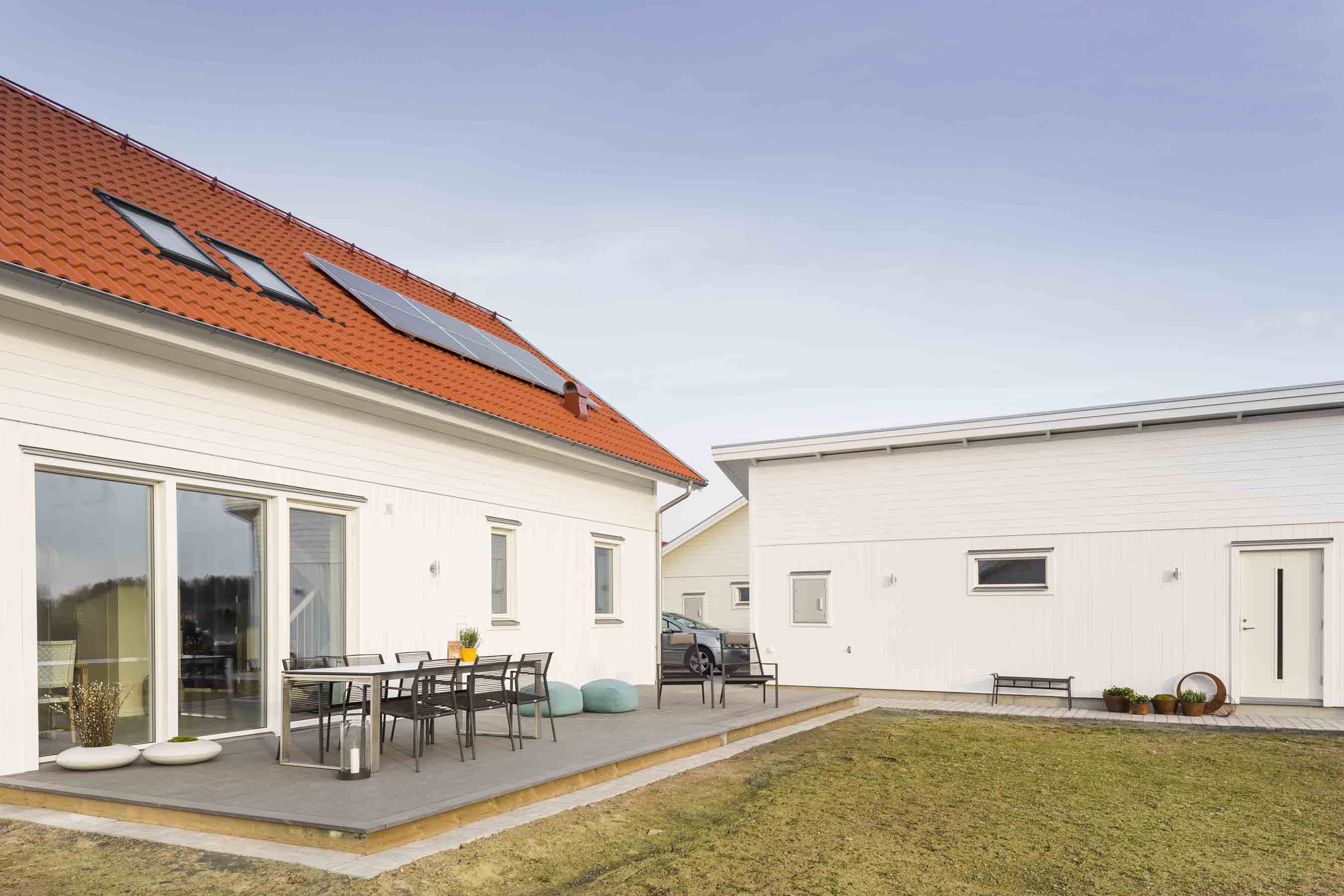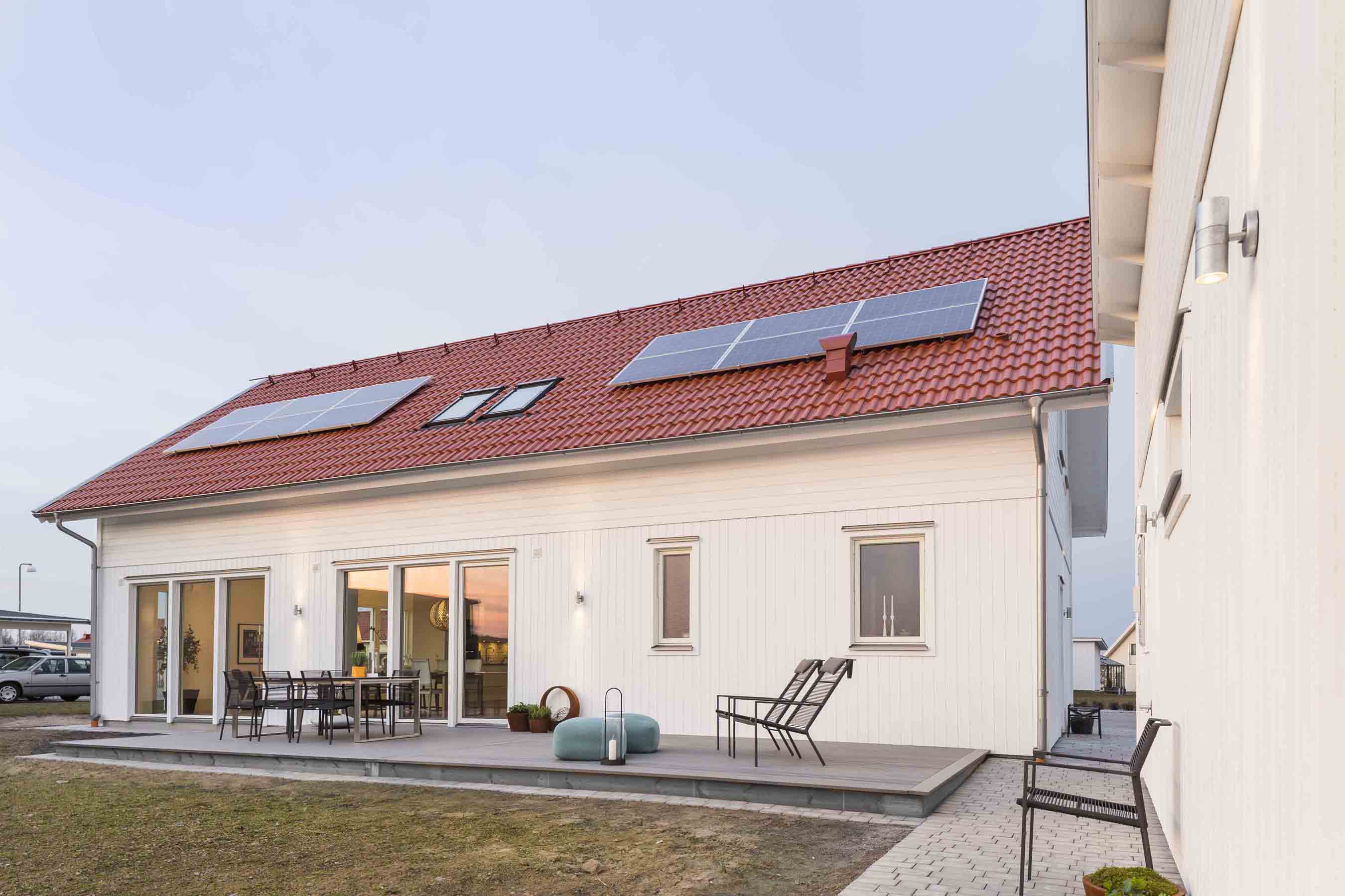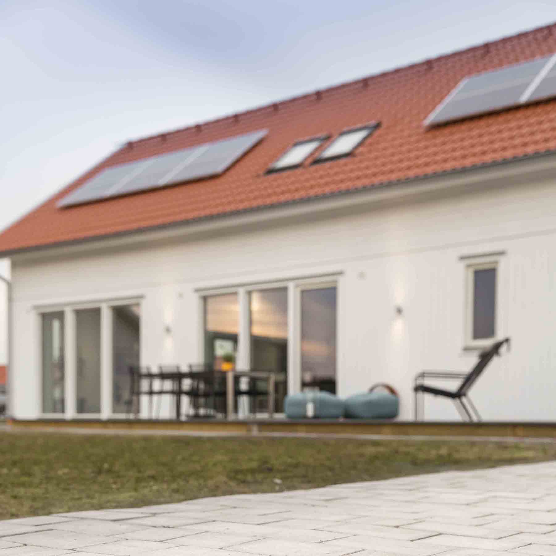 I Trädgårdsstaden i Skövde, vackert beläget i naturskönt område, har vi byggt ett hus som uppfyller morgondagens energikrav redan idag. Med solceller, högeffektiv värmepump och en rad nytänkande planlösningar och materialval har vi fått ned energiförbrukningen till mindre än en tredjedel av dagens minimikrav – 17 kvh-timmar/år mot 55 kvh-timmar/år. Energihuset är ett i alla avseenden gediget och välbyggt hus med genomtänkta detaljer.